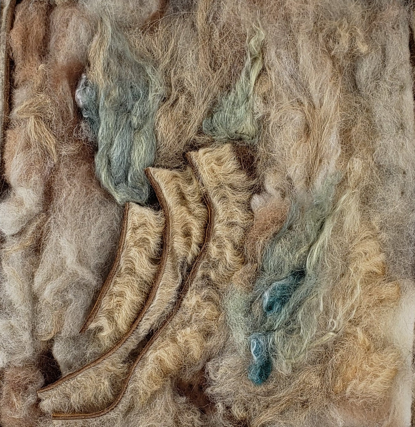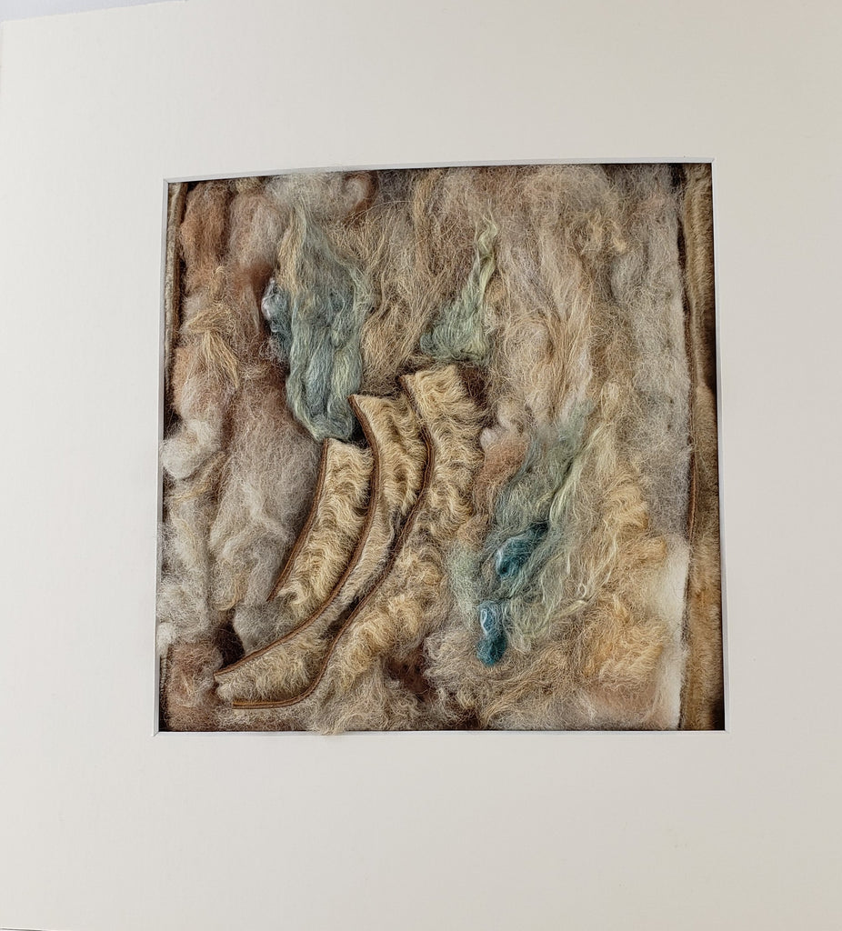 Whether you see layers of rocks or something altogether different this piece will enhance any space with its beautiful colours and textures.  Created with Wool Roving, Tussah Silk strands & Sheepskin using Needle Painting techniques. 12" X 12"(includes matting)  7.5" X 7.5" (without matting)  If your looking for a set, check out Strata  and Strata 3 - they are all beautiful  as  individual pieces or combined
