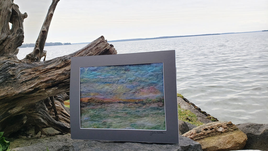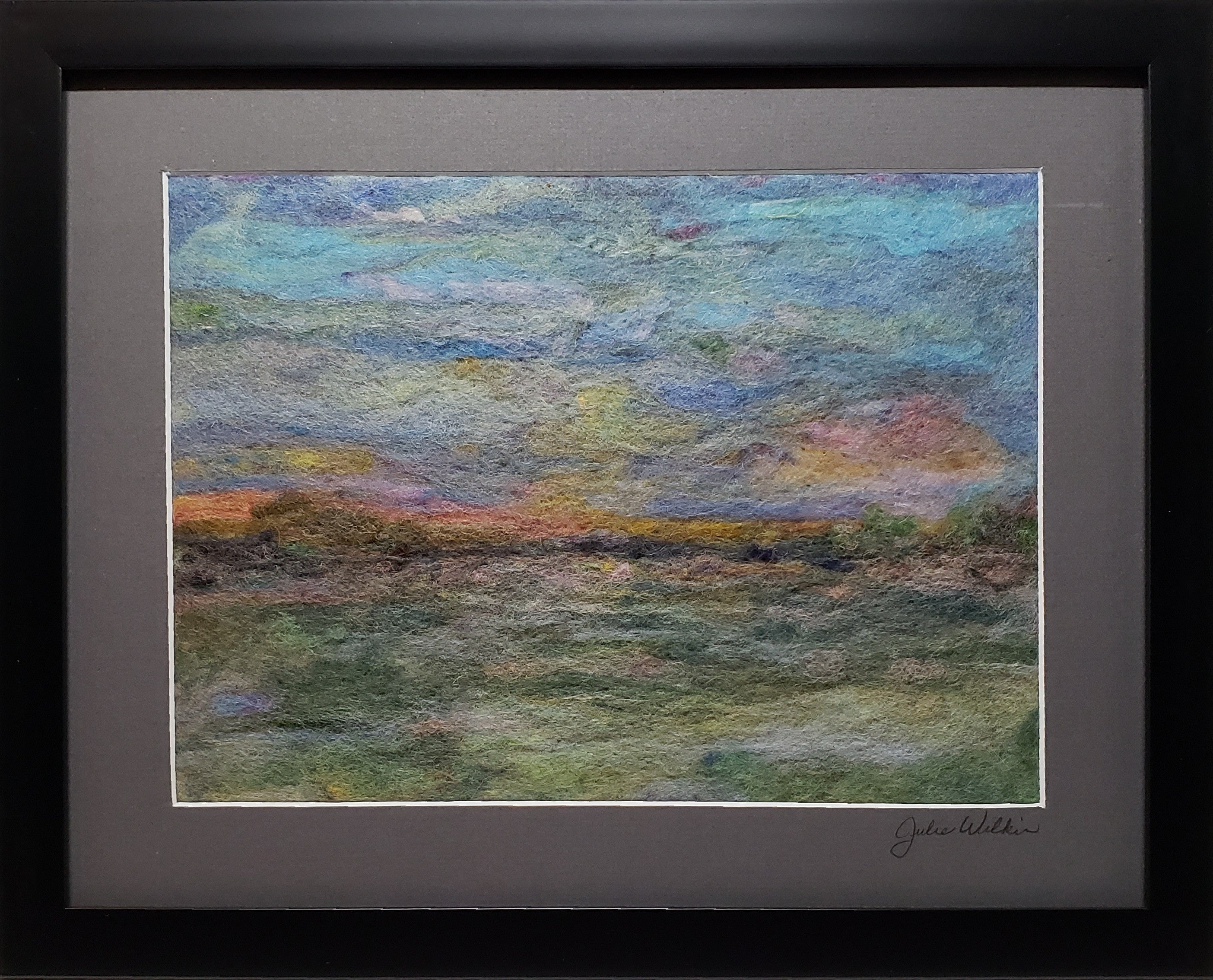 Oh the possibilities of a new day as the sun starts to peek above the horizon! This 100% Wool Needle Painting will add some positive energy to any space or shelf! 100% Wool Original 11" X 7" (14" X 11" with Included Matting & Frame)
